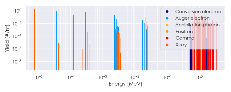 Spectra source: ICRP Publication 107: Nuclear Decay Data for Dosimetric Calculations. Ann. ICRP 2008, 38 (3).