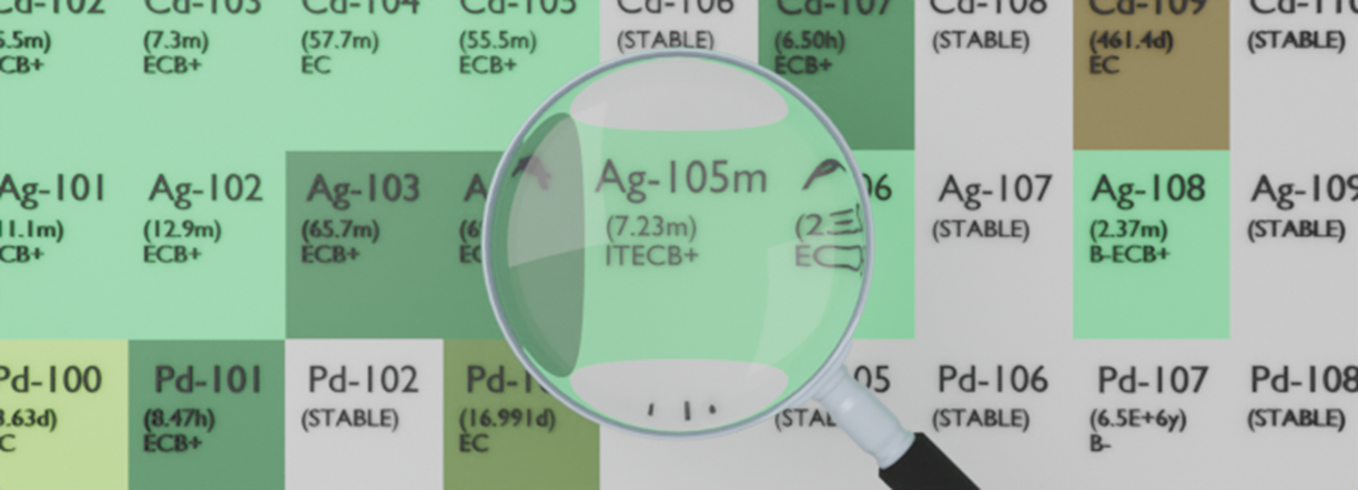 Daughters: Ag-105 (99.7%), Pd-105 (0.34%)
