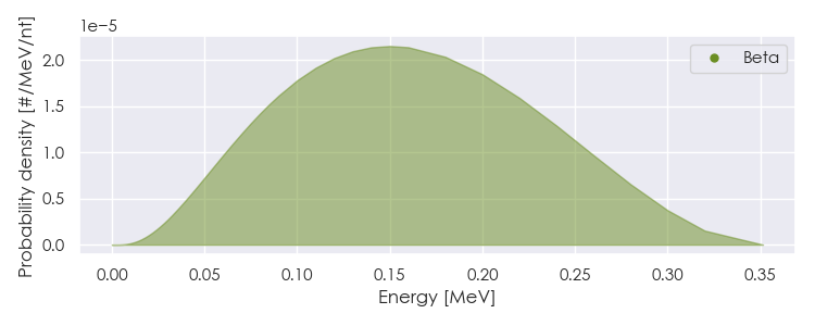 Spectra source: ICRP Publication 107: Nuclear Decay Data for Dosimetric Calculations. Ann. ICRP 2008, 38 (3).