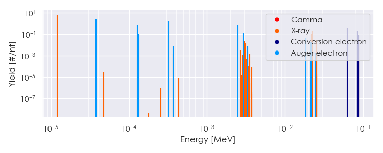 Spectra source: ICRP Publication 107: Nuclear Decay Data for Dosimetric Calculations. Ann. ICRP 2008, 38 (3).