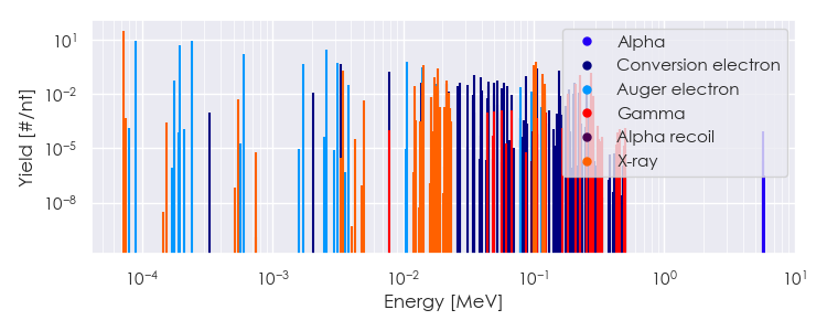 Spectra source: ICRP Publication 107: Nuclear Decay Data for Dosimetric Calculations. Ann. ICRP 2008, 38 (3).