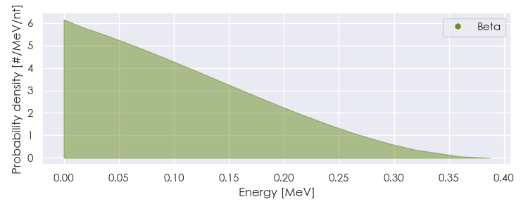 Spectra source: ICRP Publication 107: Nuclear Decay Data for Dosimetric Calculations. Ann. ICRP 2008, 38 (3).