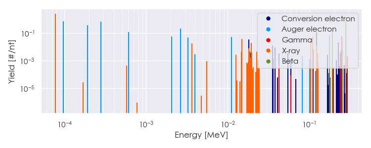 Spectra source: ICRP Publication 107: Nuclear Decay Data for Dosimetric Calculations. Ann. ICRP 2008, 38 (3).