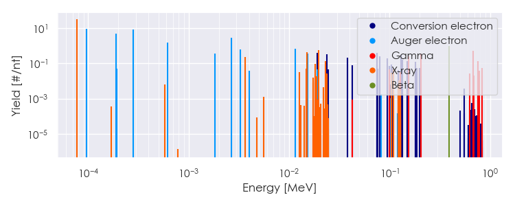 Spectra source: ICRP Publication 107: Nuclear Decay Data for Dosimetric Calculations. Ann. ICRP 2008, 38 (3).