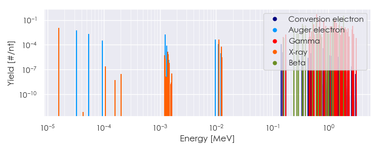 Spectra source: ICRP Publication 107: Nuclear Decay Data for Dosimetric Calculations. Ann. ICRP 2008, 38 (3).