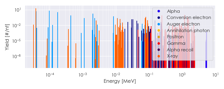 Spectra source: ICRP Publication 107: Nuclear Decay Data for Dosimetric Calculations. Ann. ICRP 2008, 38 (3).