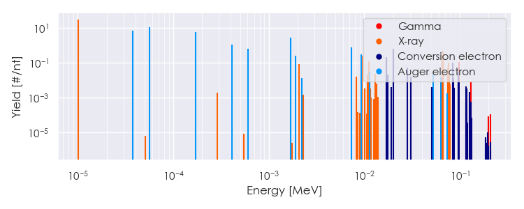 Spectra source: ICRP Publication 107: Nuclear Decay Data for Dosimetric Calculations. Ann. ICRP 2008, 38 (3).