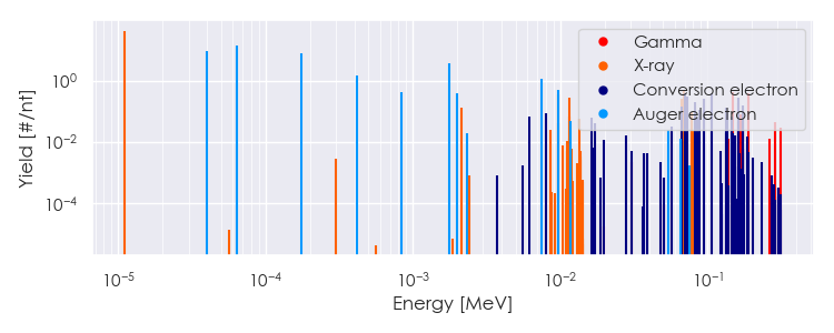 Spectra source: ICRP Publication 107: Nuclear Decay Data for Dosimetric Calculations. Ann. ICRP 2008, 38 (3).