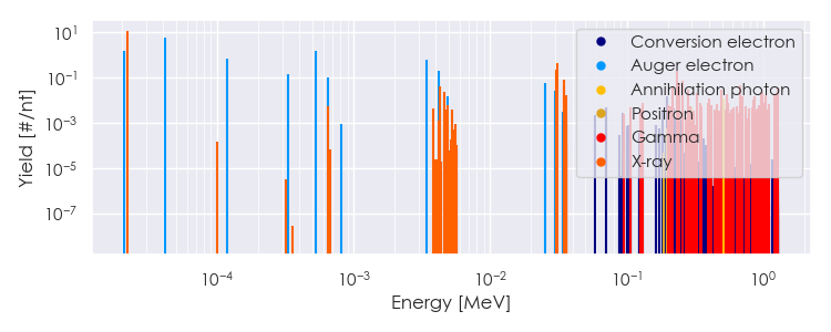 Spectra source: ICRP Publication 107: Nuclear Decay Data for Dosimetric Calculations. Ann. ICRP 2008, 38 (3).