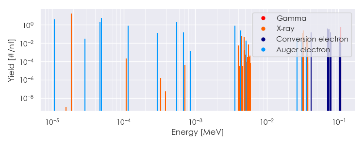 Spectra source: ICRP Publication 107: Nuclear Decay Data for Dosimetric Calculations. Ann. ICRP 2008, 38 (3).