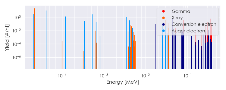 Spectra source: ICRP Publication 107: Nuclear Decay Data for Dosimetric Calculations. Ann. ICRP 2008, 38 (3).