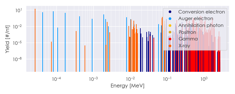 Spectra source: ICRP Publication 107: Nuclear Decay Data for Dosimetric Calculations. Ann. ICRP 2008, 38 (3).