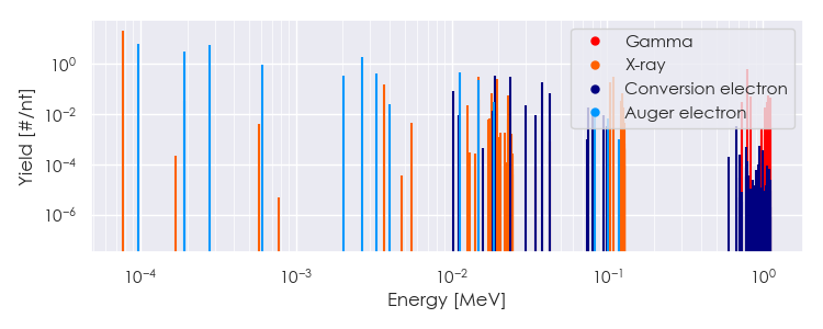 Spectra source: ICRP Publication 107: Nuclear Decay Data for Dosimetric Calculations. Ann. ICRP 2008, 38 (3).