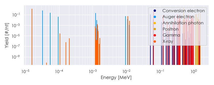 Spectra source: ICRP Publication 107: Nuclear Decay Data for Dosimetric Calculations. Ann. ICRP 2008, 38 (3).