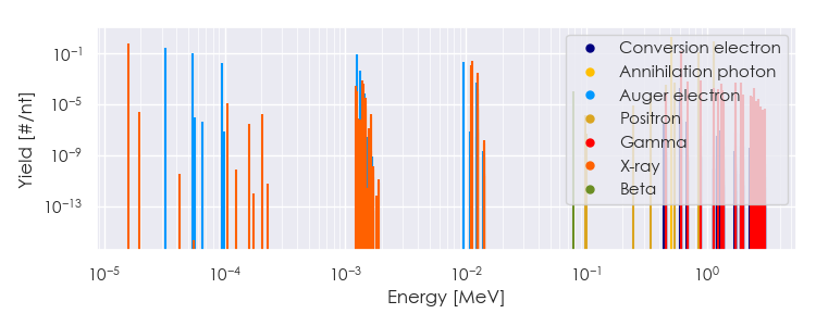 Spectra source: ICRP Publication 107: Nuclear Decay Data for Dosimetric Calculations. Ann. ICRP 2008, 38 (3).