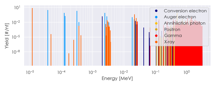 Spectra source: ICRP Publication 107: Nuclear Decay Data for Dosimetric Calculations. Ann. ICRP 2008, 38 (3).