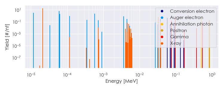 Spectra source: ICRP Publication 107: Nuclear Decay Data for Dosimetric Calculations. Ann. ICRP 2008, 38 (3).