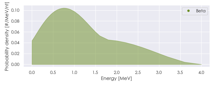 Spectra source: ICRP Publication 107: Nuclear Decay Data for Dosimetric Calculations. Ann. ICRP 2008, 38 (3).