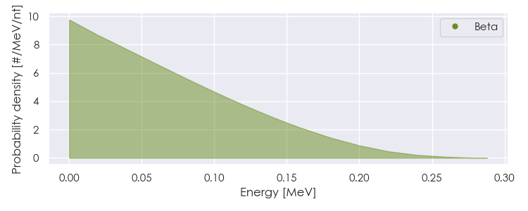 Spectra source: ICRP Publication 107: Nuclear Decay Data for Dosimetric Calculations. Ann. ICRP 2008, 38 (3).