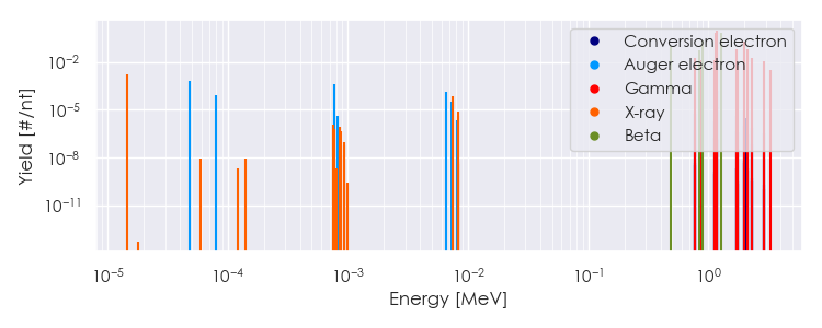 Spectra source: ICRP Publication 107: Nuclear Decay Data for Dosimetric Calculations. Ann. ICRP 2008, 38 (3).