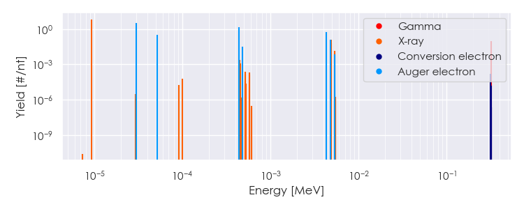 Spectra source: ICRP Publication 107: Nuclear Decay Data for Dosimetric Calculations. Ann. ICRP 2008, 38 (3).