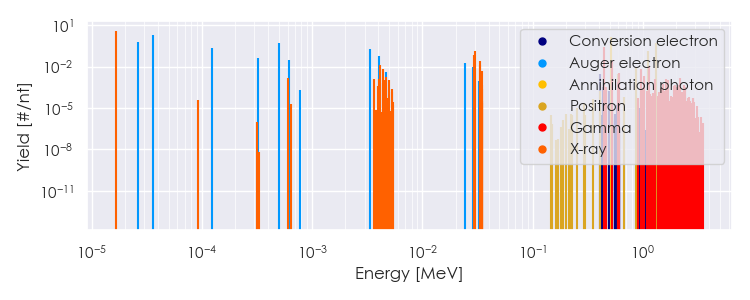 Spectra source: ICRP Publication 107: Nuclear Decay Data for Dosimetric Calculations. Ann. ICRP 2008, 38 (3).
