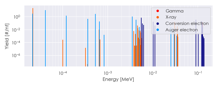 Spectra source: ICRP Publication 107: Nuclear Decay Data for Dosimetric Calculations. Ann. ICRP 2008, 38 (3).