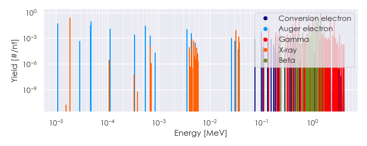 Spectra source: ICRP Publication 107: Nuclear Decay Data for Dosimetric Calculations. Ann. ICRP 2008, 38 (3).