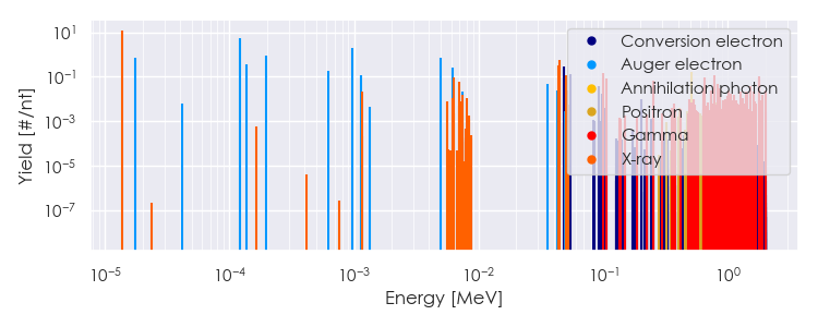 Spectra source: ICRP Publication 107: Nuclear Decay Data for Dosimetric Calculations. Ann. ICRP 2008, 38 (3).