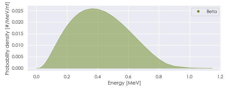 Spectra source: ICRP Publication 107: Nuclear Decay Data for Dosimetric Calculations. Ann. ICRP 2008, 38 (3).