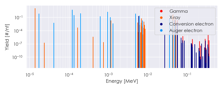 Spectra source: ICRP Publication 107: Nuclear Decay Data for Dosimetric Calculations. Ann. ICRP 2008, 38 (3).