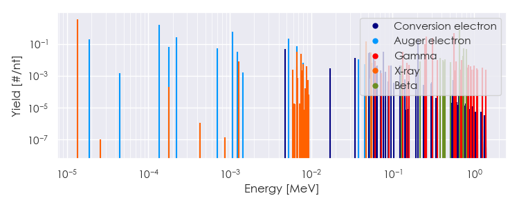 Spectra source: ICRP Publication 107: Nuclear Decay Data for Dosimetric Calculations. Ann. ICRP 2008, 38 (3).