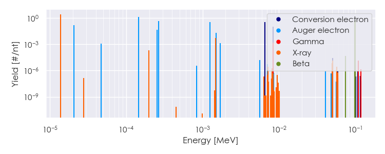 Spectra source: ICRP Publication 107: Nuclear Decay Data for Dosimetric Calculations. Ann. ICRP 2008, 38 (3).