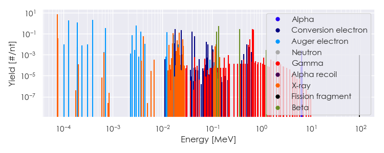 Spectra source: ICRP Publication 107: Nuclear Decay Data for Dosimetric Calculations. Ann. ICRP 2008, 38 (3).