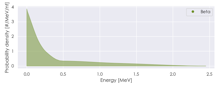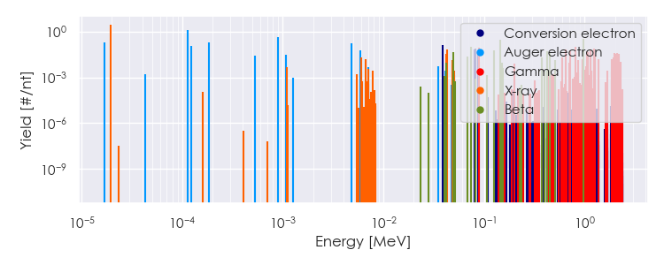 Spectra source: ICRP Publication 107: Nuclear Decay Data for Dosimetric Calculations. Ann. ICRP 2008, 38 (3).