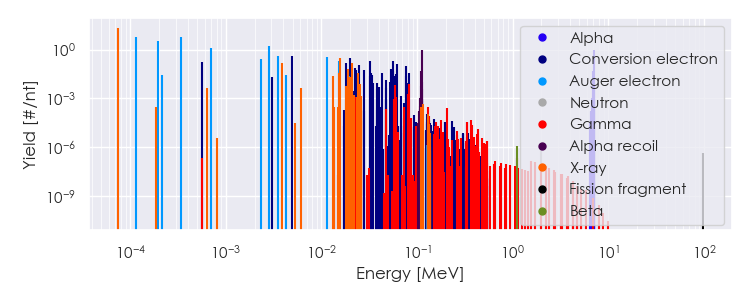 Spectra source: ICRP Publication 107: Nuclear Decay Data for Dosimetric Calculations. Ann. ICRP 2008, 38 (3).