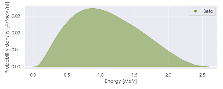 Spectra source: ICRP Publication 107: Nuclear Decay Data for Dosimetric Calculations. Ann. ICRP 2008, 38 (3).