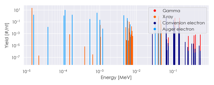 Spectra source: ICRP Publication 107: Nuclear Decay Data for Dosimetric Calculations. Ann. ICRP 2008, 38 (3).