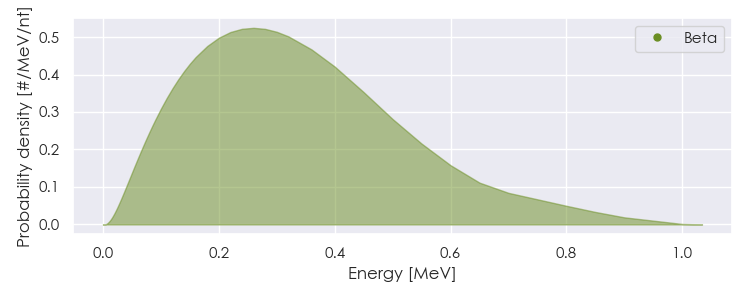 Spectra source: ICRP Publication 107: Nuclear Decay Data for Dosimetric Calculations. Ann. ICRP 2008, 38 (3).