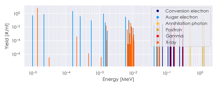 Spectra source: ICRP Publication 107: Nuclear Decay Data for Dosimetric Calculations. Ann. ICRP 2008, 38 (3).