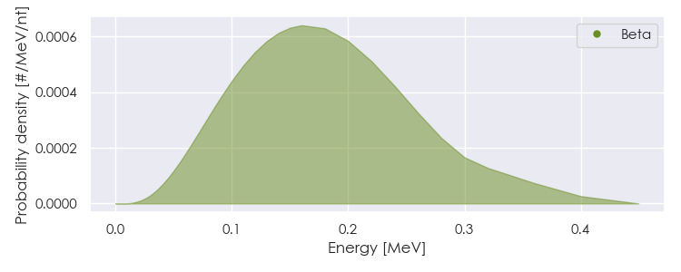 Spectra source: ICRP Publication 107: Nuclear Decay Data for Dosimetric Calculations. Ann. ICRP 2008, 38 (3).