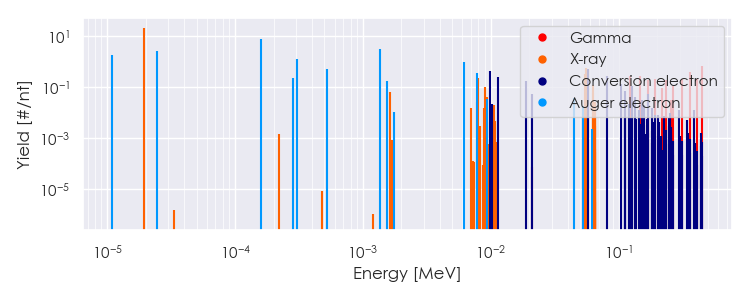 Spectra source: ICRP Publication 107: Nuclear Decay Data for Dosimetric Calculations. Ann. ICRP 2008, 38 (3).
