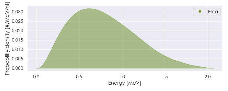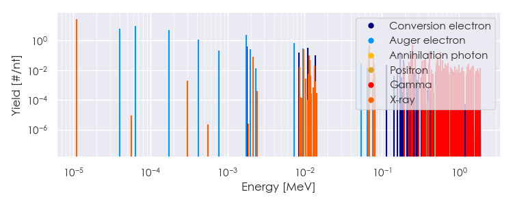 Spectra source: ICRP Publication 107: Nuclear Decay Data for Dosimetric Calculations. Ann. ICRP 2008, 38 (3).