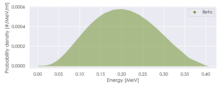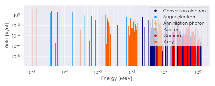 Spectra source: ICRP Publication 107: Nuclear Decay Data for Dosimetric Calculations. Ann. ICRP 2008, 38 (3).