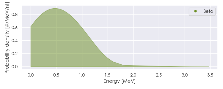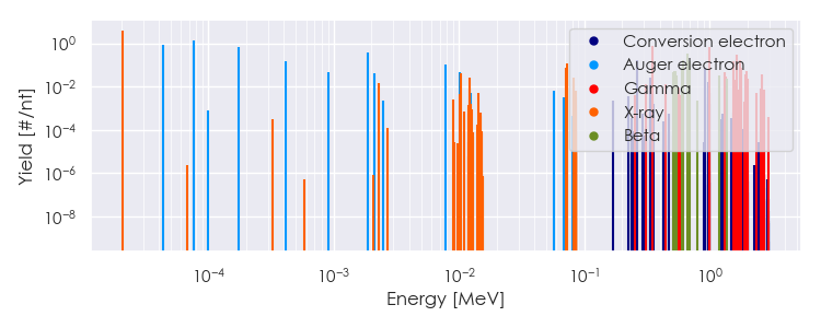 Spectra source: ICRP Publication 107: Nuclear Decay Data for Dosimetric Calculations. Ann. ICRP 2008, 38 (3).