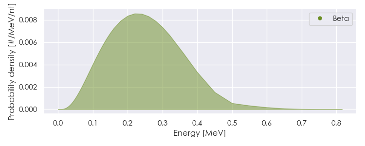 Spectra source: ICRP Publication 107: Nuclear Decay Data for Dosimetric Calculations. Ann. ICRP 2008, 38 (3).