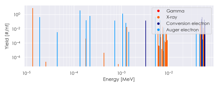 Spectra source: ICRP Publication 107: Nuclear Decay Data for Dosimetric Calculations. Ann. ICRP 2008, 38 (3).