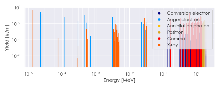 Spectra source: ICRP Publication 107: Nuclear Decay Data for Dosimetric Calculations. Ann. ICRP 2008, 38 (3).