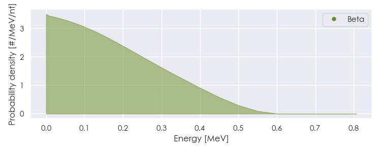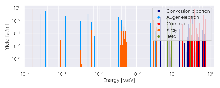 Spectra source: ICRP Publication 107: Nuclear Decay Data for Dosimetric Calculations. Ann. ICRP 2008, 38 (3).