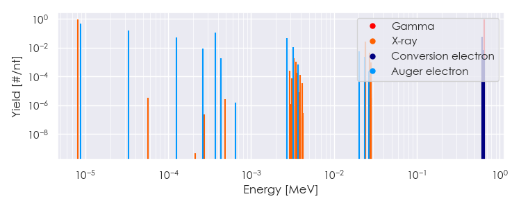 Spectra source: ICRP Publication 107: Nuclear Decay Data for Dosimetric Calculations. Ann. ICRP 2008, 38 (3).